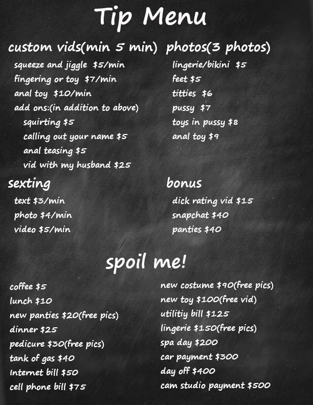 Fingering, Erotic Dance, Flashing, Masturbation, Dildo or Vibrator, Dirty Talk, Foot Fetish, Handjob, Humiliation, Jerk-off Instruction, Orgasm, Sex Toys, Topless, Blowjob, Squirt